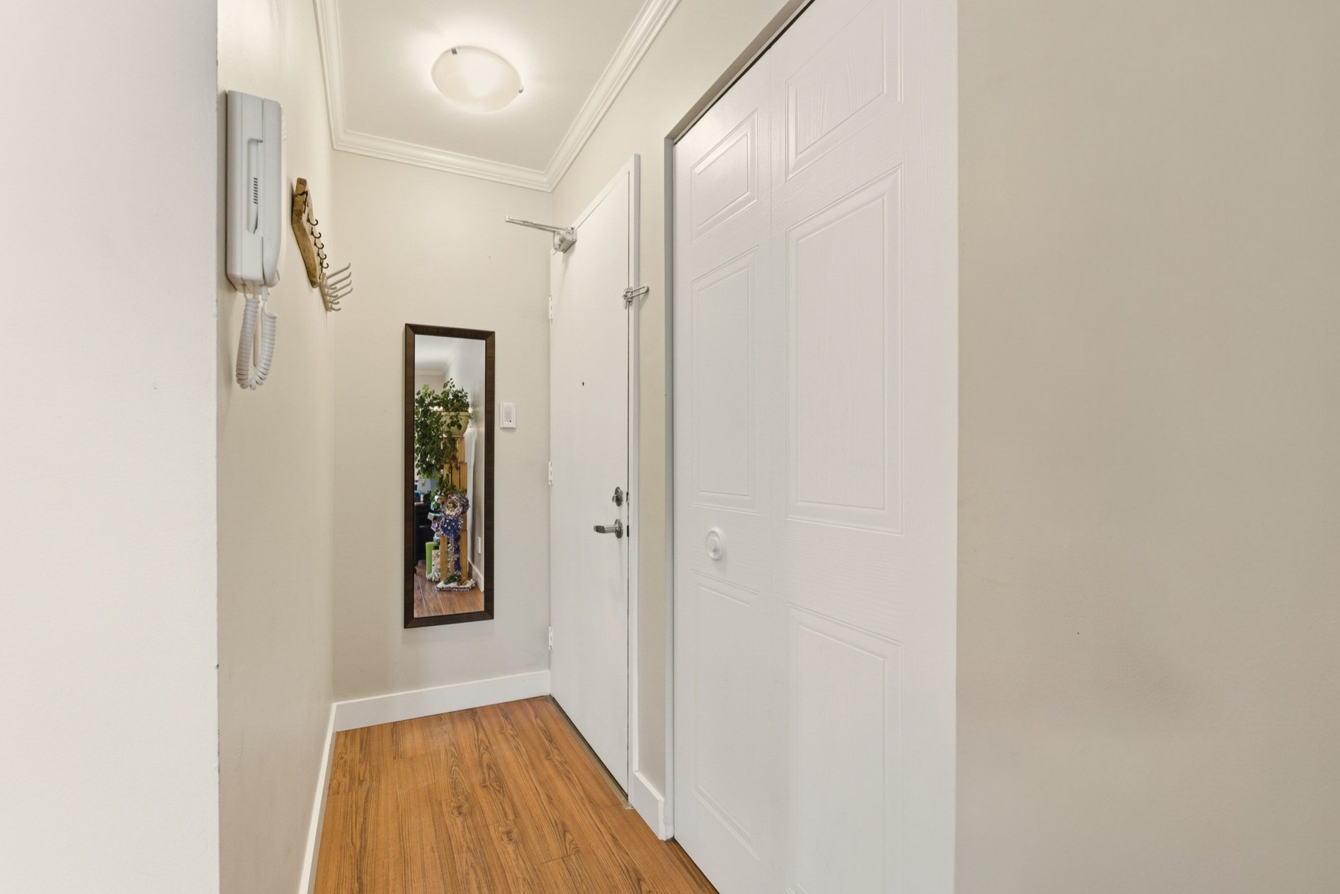 *Hall d'entrée fonctionnel menant à un salon lumineux.