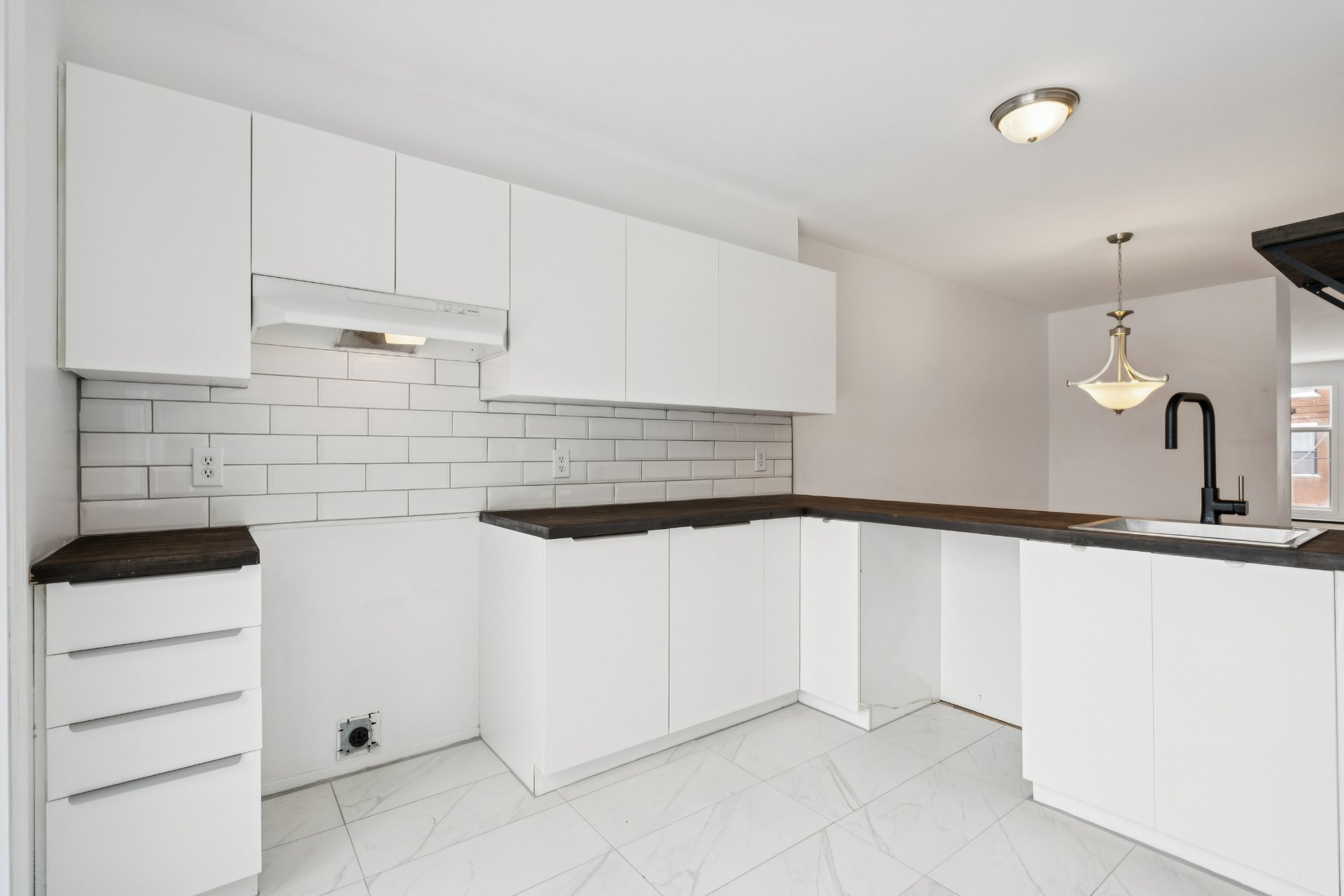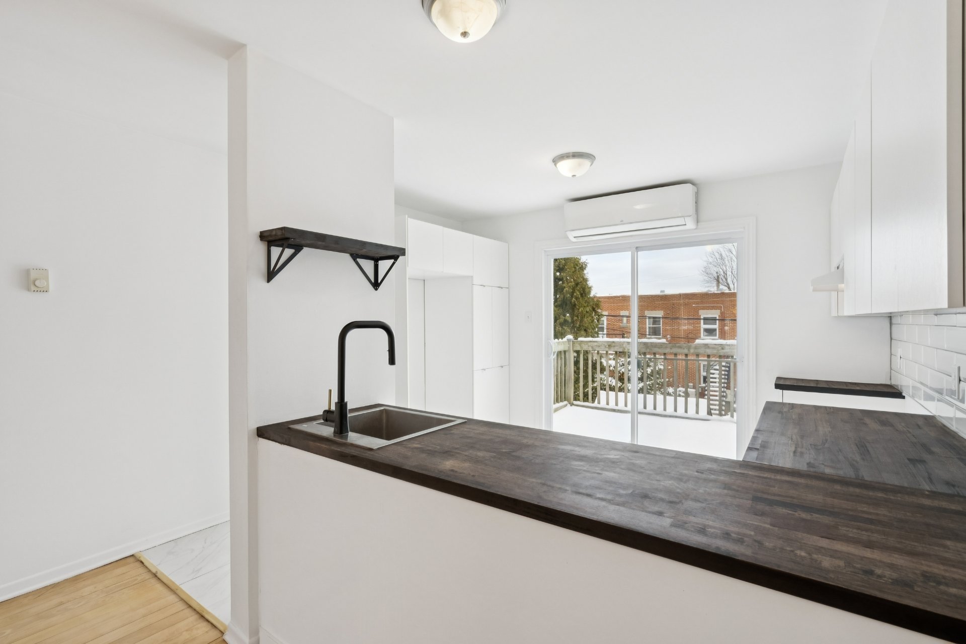 renovated kitchen overlooks the main living area, making it